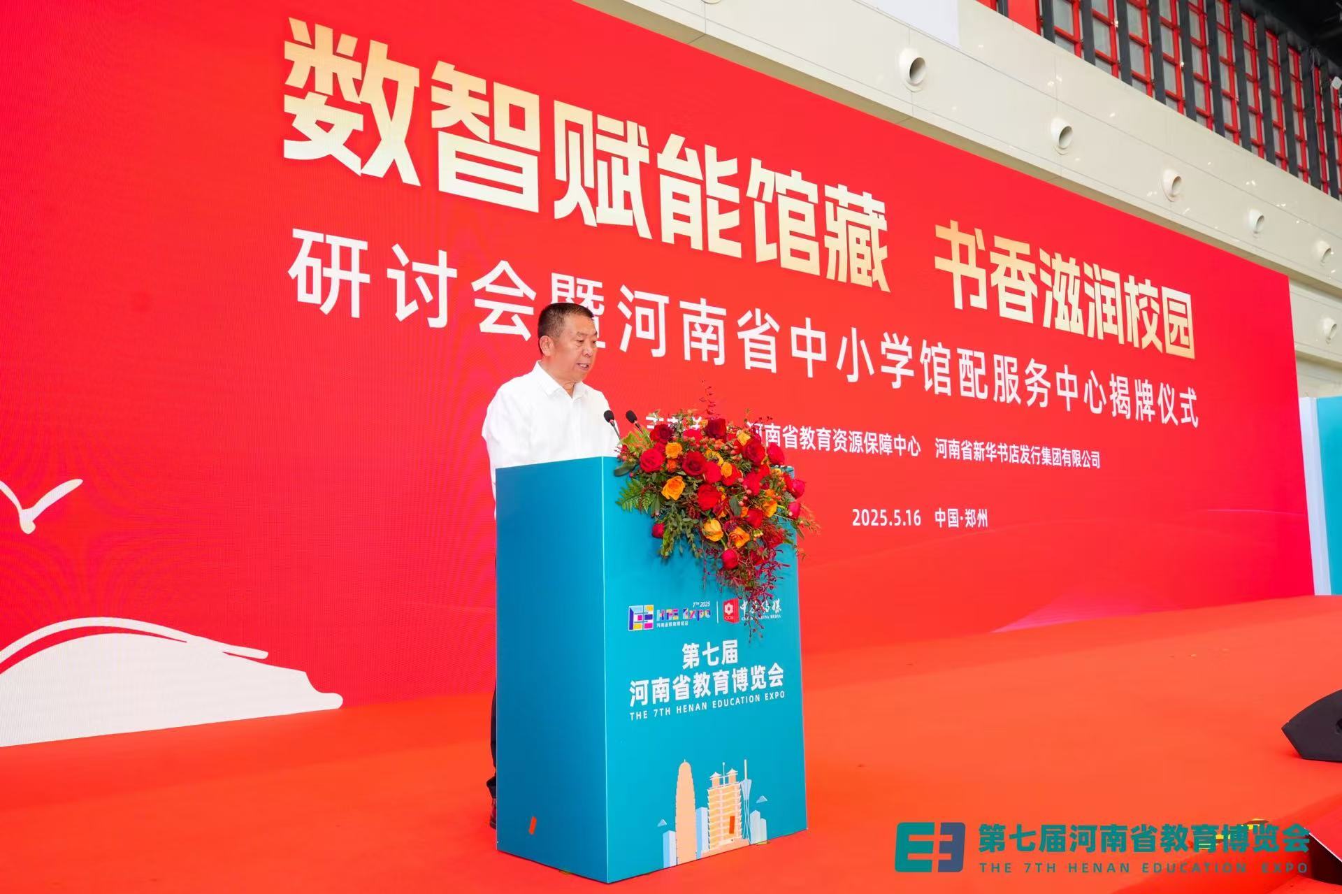 5月16日,第七屆河南省教育博覽會開幕當天,“數智賦能館藏·書香滋潤校園”研討會暨河南省中小學館配服務中心揭牌儀式在鄭州舉行。省教育資源保障中心主任孫家棟、省新華書店發(fā)行集團相關領導出席活動并講話。